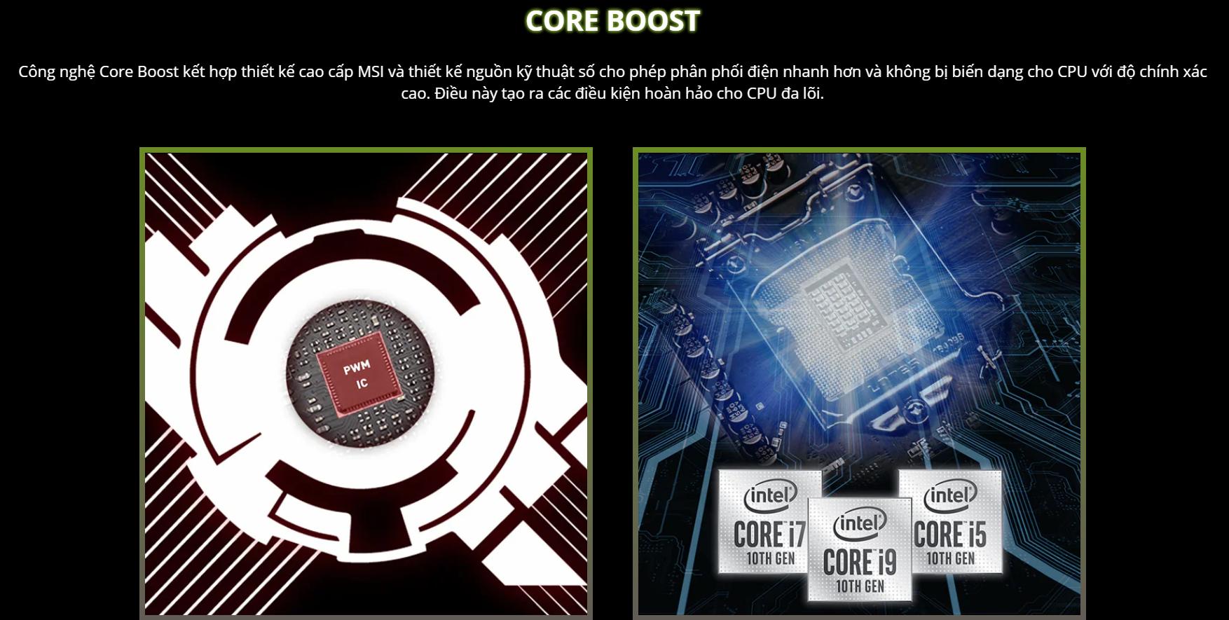Core Boost là công nghệ độc quyền của MSI, cho phép mainboard cung cấp nguồn điện hợp lý nhất cho các CPU đa nhân để đem lại hiệu năng cao nhất.